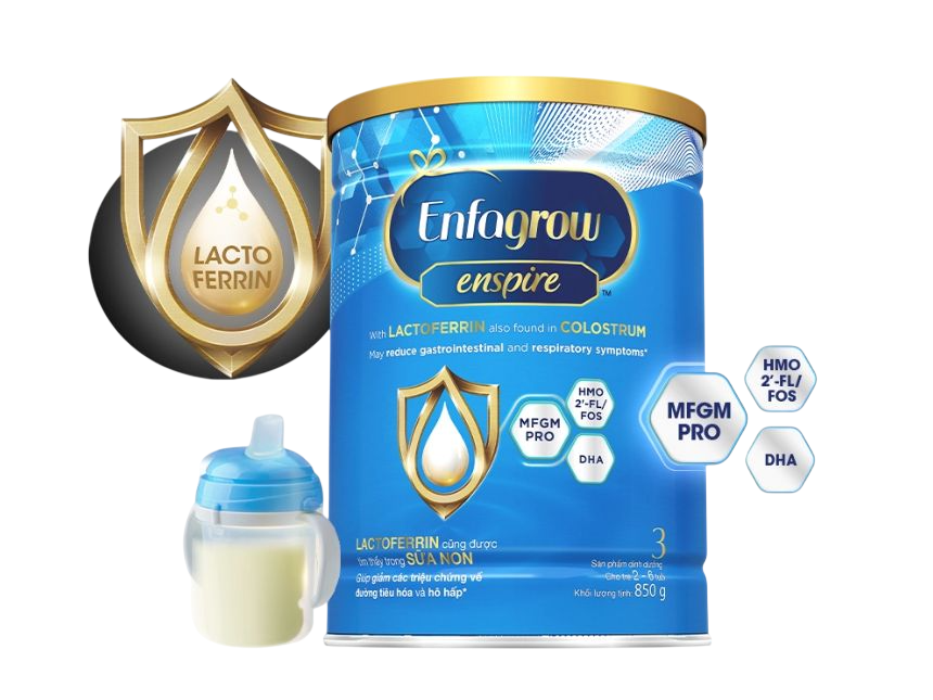 Chọn Enfa Enspire với Lactoferrin được tìm thấy trong sữa non giúp giảm các triệu chứng về đường tiêu hóa & hô hấp.